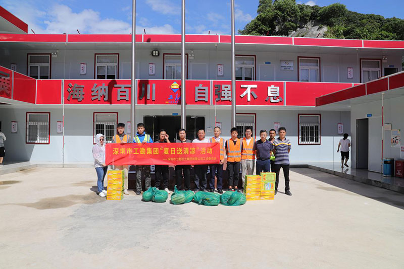 “天氣熱了,大家一定要注意做好防暑降溫工作……”在招商局前海環(huán)貿(mào)中心項(xiàng)目地基與基礎(chǔ)工程施工現(xiàn)場(chǎng),一派熱火朝天的景象,工人們正在加緊施工,集團(tuán)領(lǐng)導(dǎo)上前為工人們送上防暑降溫慰問(wèn)品,并仔細(xì)詢問(wèn)項(xiàng)目建設(shè)進(jìn)度。每到一處,集團(tuán)領(lǐng)導(dǎo)都與一線員工親切交談,了解員工的工作生活情況,對(duì)他們不畏高溫、不辭辛勞、兢兢業(yè)業(yè)的工匠精神給予了高度肯定。還特意叮囑大家要合理安排工作,注意勞逸結(jié)合,注重崗位安全,在工作的同時(shí)要注意防暑降溫,增強(qiáng)自我安全防范意識(shí),確保身體健康。